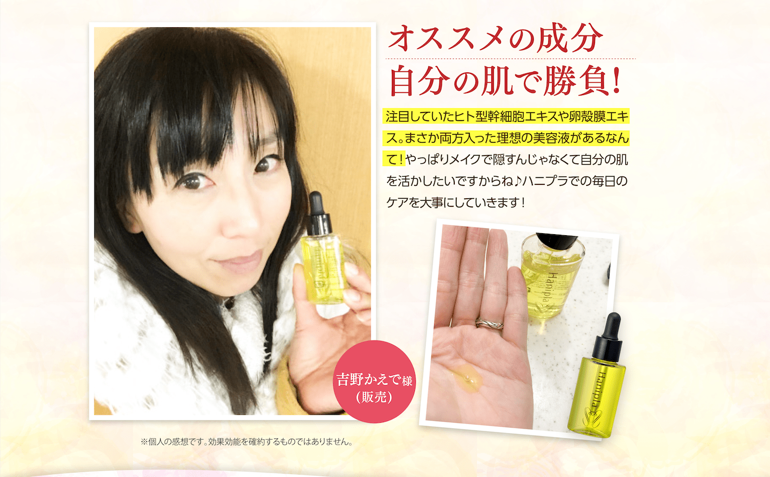 エイジングケア※ハリ、しわに♪ヒト幹細胞、卵殻膜を高配合!【ハニプラ美容液】